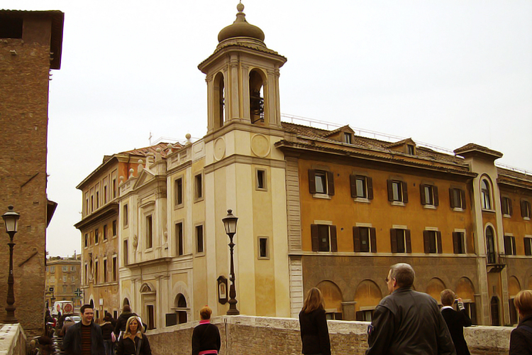 La chiesa di San Giovanni Calibita, annessa all’Ospedale Fatebenefratelli, sorse nell’area del tempio di “Iuppiter Iurarius” sull'Isola Tiberina. La chiesa, che inizialmente era dedicata a San Giovanni Battista, assunse l’attuale nome soltanto a partire dal ‘500, il più antico riferimento certo alla chiesa si trova in una bolla di papa Benedetto VIII del 1018. La facciata opera di Luigi Barattoni (1640) fu completata da Romano Carapecchia nel 1711, il campanile settecentesco fu costruito da Cesare Bazzani (1930). L’interno è a navata unica radicalmente rinnovato nel 1733-1742, il ricco apparato decorativo costituito da marmi, stucchi e affreschi di particolare bellezza si deve a Corrado Giaquinto. Nella volta “Gloria di San Giovanni di Dio” del Giaquinto, al quale si devono anche le tele ai lati dell’altare maggiore e gli affreschi del presbiterio. Sul 1/o altare a destra, affresco raffigurante “la Madonna della Lampada” (XIII secolo) che secondo la tradizione popolare l’immagine un tempo, posta in riva al fiume con una lampada votiva accesa, nel 1557 venne sommersa da una esondazione del fiume; malgrado ciò la lampada continuò ad ardere, suscitando così lo stupore del popolo e la pubblica devozione.